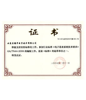 - 蘭德華公司被列為《電子巡查國(guó)家行業(yè)標(biāo)準(zhǔn)》起草單位,公司主創(chuàng)人員王兵、張韶虞作為專家起草人之一
